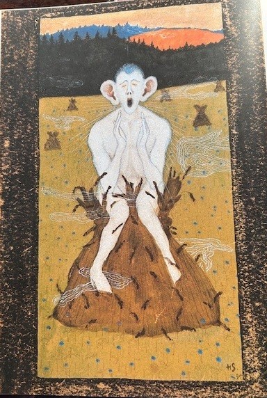 Bereits im ersten Jahr seines Aufenthaltes malte er eines seiner bekanntesten Werke, Halla (Frost). In dem Gemälde sitzt ein seltsames Wesen auf einer Getreidegarbe und pustet kalte Luft. Das Werk gibt einen Einblick in die sonderbare Welt von Hugo Simberg, in der Träume und Sagen miteinander verwoben sind. Seine Werke sind häufig interpretiert worden und man hat in ihnen u.a. Hinweise auf klassische Sagen, biblische Geschichten und Märchen von Hans Christian Andersen gefunden.
