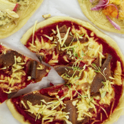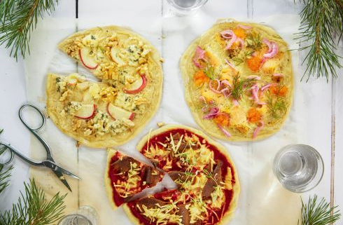 Die Belagvarianten reichen jeweils für eine Teigportion. Alternativ kann man Pizzen mit allen Varianten zubereiten, aber mit kleineren Belagportionen.